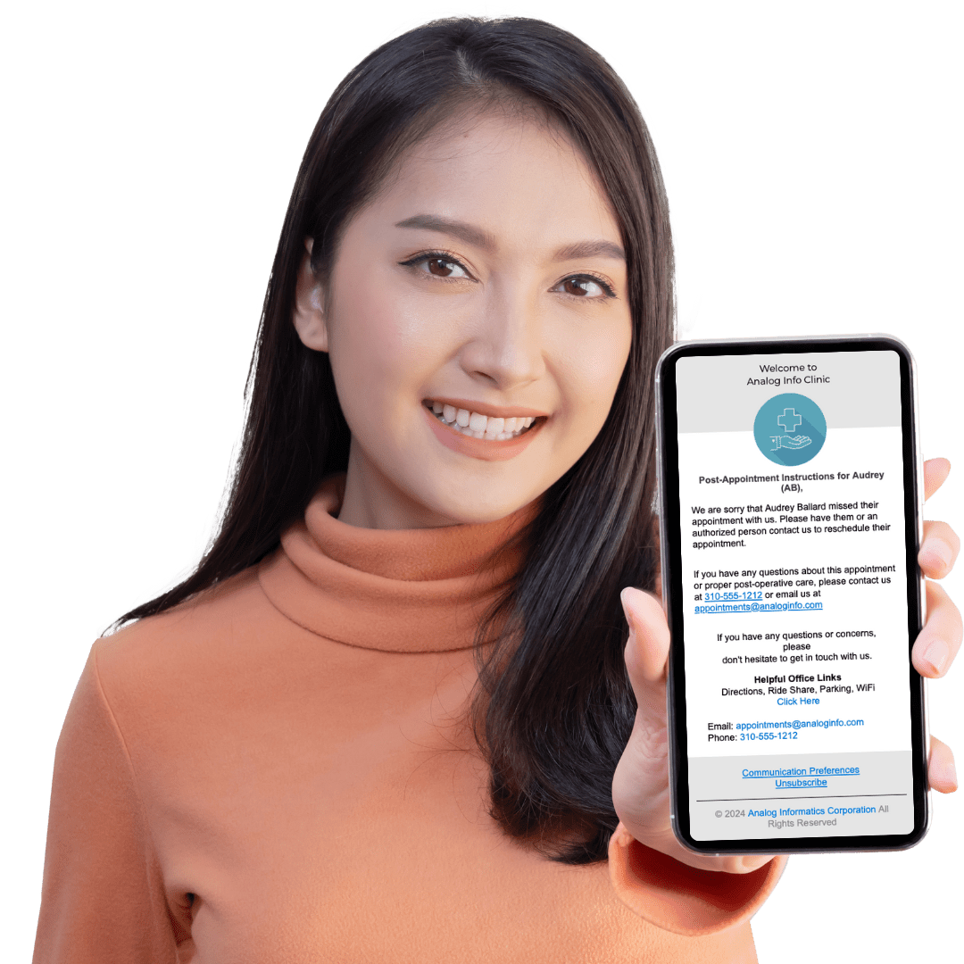 To address these potential legal risks, mental health facilities should implement robust systems for patient engagement. Analog Informatics’ automated patient engagement solution offers a comprehensive approach to mitigate these risks: